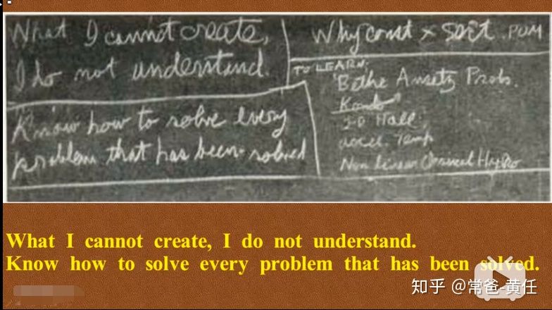 (只要是)我不能创造的,我就(还)没有理解。要知道怎么解决每一个已经被解决的问题。