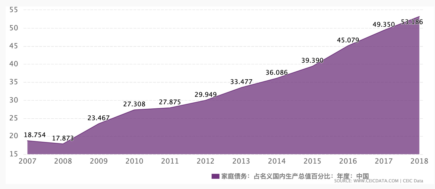 中国住户部门负债率2018